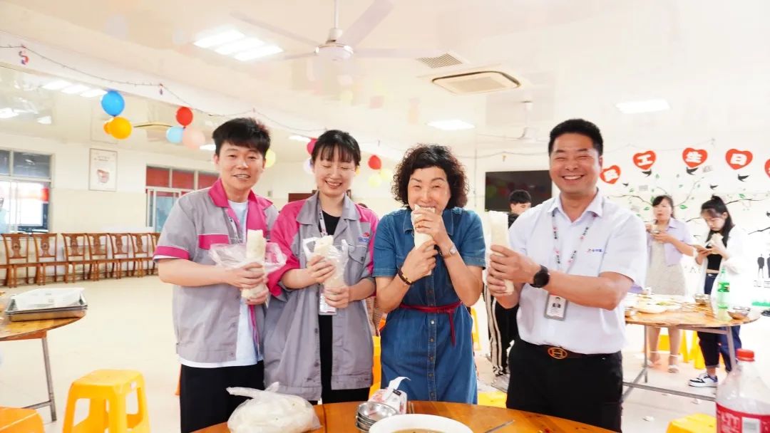 人力行政部也安排了很多豐富多彩的活動,有吃的、有喝的、有玩的,在端午節(jié)來臨之際,來自五湖四海的員工也入鄉(xiāng)隨俗,一起包食餅筒提前過端午。最后,便迎來了本次生日會的重頭戲——員工集體為壽星們唱響生日祝福,共享甜蜜的生日蛋糕。