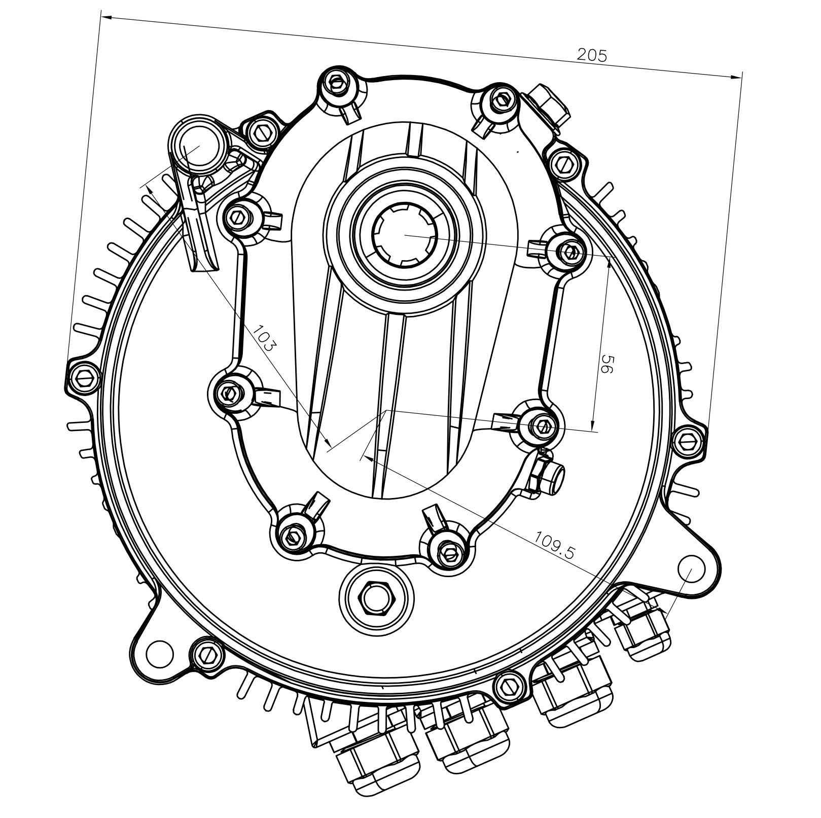 Maximum outer diameter of contour:  205